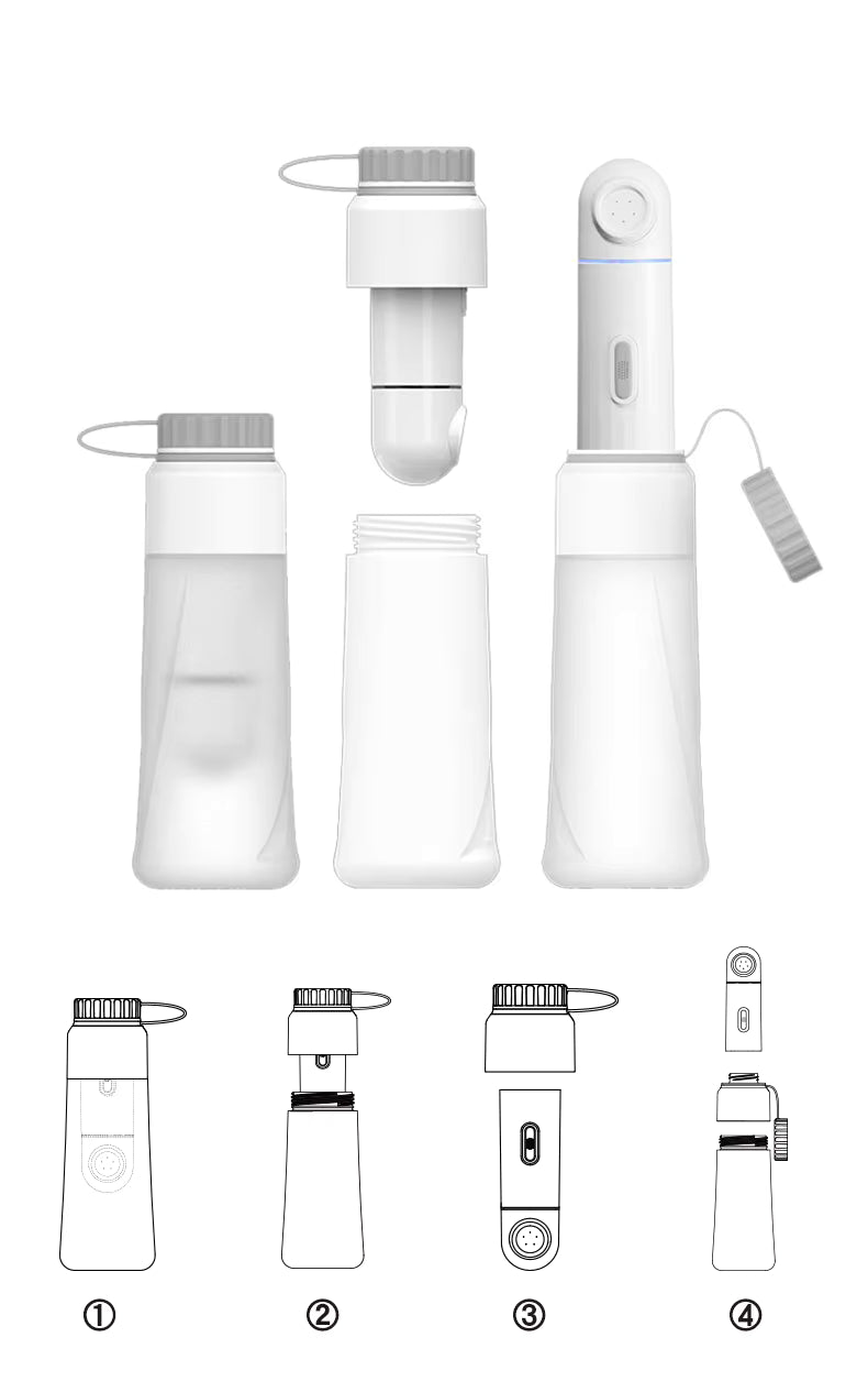Compatible with most mineral water bottles and fully waterproof for effortless washing. Perfect for travel, camping, or daily personal hygiene.